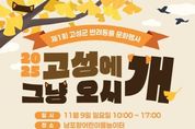 (포탈뉴스통신) 고성군은 오는 11월 9일 일요일 오전 10시, 남포항 일원(어린이 물놀이터 입구)에서 제1회 반려동물 문화행사 ‘고성에 그냥 오시개’를 개최한다고 밝혔다. 군은 올해 9월 26일 동물가족센터를 새롭게 개관하며 반려동물 복지와 문화 활성화를 위해 노력하고 있다. 이번 행사는 반려동물과 보호자가 함께 즐기고 교감할 수 있는 다양한 체험 프로그램으로 구성되어 있다. 특히 반려동물 행동교정 전문가 이웅종 교수의 ‘바른산책’ 특별강연 및 Q&A가 열려 반려동물 보호자들의 큰 관심이 기대된다. 이 밖에도 △반려동물 장기자랑 △기다려대회 △청결미용 체험 △‘견생네컷’ 포토존 △펫타로 △반려동물 캐리커쳐 △터그 만들기 △어질리티(Agility) 체험 등 반려인과 비반려인 모두가 즐길 수 있는 다채로운 프로그램이 준비돼 있다. 또한, 이번 행사에서는 고성군 동물가족센터에서 현재 보호 중인 유기견들을 직접 만나볼 수 있는 입양 행사가 함께 열린다. 새로운 가족을 기다리고 있는 사랑스러운 유기견들이 현장에 나와 방문객들과 교감하며, 따뜻한 마음으로 평생 함께할 반려동물을 찾을 수 있는 소중한 기회가 제공될 예정이