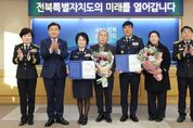 (포탈뉴스통신) 전북특별자치도는 6일 도청에서 제13대 전북특별자치도 의용소방대 남·여 연합회장을 선출하고 임명장을 수여했다. 이번 선출로 전북특별자치도 의용소방대 남성연합회장에는 완주 민국열 대장이, 여성연합회장에는 정읍 김성순 대장이 각각 선출됐다. 연합회장은 전북특별자치도 의용소방대를 대표해 지역 의용소방대 간 협력과 연대를 강화하고 생활 속 안전문화 확산을 선도하는 역할을 수행하는 자리로, 전북 지역의 안전을 책임지는 핵심적인 책무를 맡게된다. 민국열 남성회장은 2016년 입대하여 2023년 의용소방대장, 2024년 완주 연합회장으로 활동하며 지역 내 화재 등 크고작은 재난대응과 봉사활동에 적극 참여해왔다. 특히 2024년 7월 기록적인 폭우로 피해를 입은 주민들이 하루빨리 일상으로 복귀할 수 있도록 생업을 뒤로한 채 복구활동에 전념하는 등 지역안전에 크게 기여한 바 있다. 또한, 김성순 여성회장은 2004년 입대 이후 20여 년 동안 화재와 풍수해 등 각종 재난 현장 최일선에서 시민의 생명과 재산을 지켜왔으며, 독거노인 돌봄과 취약계층 반찬나눔 등 이웃을 위한 따뜻한 봉사활동을 지속해 왔다