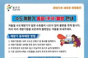 (포탈뉴스통신) 울진군 맑은물사업소는 본격적인 동절기 한파에 대비해 수도계량기 및 수도관 동파로 인한 주민 불편을 최소화하고자 대대적인 예방 홍보와 긴급 복구 대책 추진에 나섰다. 군은 오는 3월 15일까지를‘겨울철 수도시설 동파방지 대책 기간’으로 정하고, 상수도 분야 긴급 대책반을 운영한다. 대책반은 동파 사고 발생 시 신속한 복구와 비상 급수를 지원해 주민들의 생활용수 공급에 차질이 없도록 대응할 계획이다. 특히, 겨울철 동파 사고를 예방하기 위해 주민들에게 다음과 같은 행동 요령을 적극 안내하고 있다. 먼저 계량기함 밀폐 및 보온관리가 중요하다. 계량기함 내부의 수도관 관통구 등 틈새를 밀폐하고, 헌 옷이나 에어캡 등 젖지 않은 보온재로 내부를 가득 채워야 한다. 외부 뚜껑 부분은 비닐 등으로 덮어 찬 공기 유입을 차단하는 것이 중요하다. 또한 혹한이 예상되거나 장기간 외출 시에는 수도꼭지를 조금 열어 수돗물을 가늘게 흐르하는 소량 퇴수를 통해 관로 내 결빙을 효과적으로 예방할 수 있다. 아울러 계량기나 수도관이 얼었을 경우에는 50도 이상