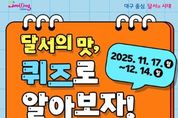 (포탈뉴스통신) 대구 달서구는 11월 17일부터 12월 14일까지 4주간‘달서의 맛, 퀴즈로 알아보자!’ 온라인 퀴즈 이벤트를 진행한다. 이번 이벤트는‘달서맛나’,‘달토기빵’등 달서구를 대표하는 음식 브랜드의 인지도를 높이고, 주민들이 즐겁게 참여할 수 있는 온라인 퀴즈 형식의 참여형 캠페인으로 마련됐다. 퀴즈는 달서맛나 홈페이지 내 이벤트 페이지에서 누구나 참여할 수 있으며, 4주 동안 매주 서로 다른 달서구 대표 음식 브랜드를 주제로 진행된다. 문항은 주민들이 쉽게 풀 수 있는 상식형 퀴즈로 구성되어 있어, 남녀노소 누구나 부담 없이 참여할 수 있다. 각 회차 종료 후에는 추첨을 통해 매주 70명씩 총 280명에게 편의점 모바일 상품권(5,000원권)을 증정하며, 당첨자 명단은 달서맛나 홈페이지를 통해 공개될 예정이다. 이태훈 달서구청장은 “이번 온라인 퀴즈 이벤트가 달서구 대표 음식 브랜드의 인지도 확산은 물론, 지역 맛집과 향토 음식에 대한 주민들의 관심을 높이는 계기가 되길 기대한다”며 “앞으로도 주민 참여를 확대하고 지역경제 활성화에 도움이 되는 다양한 홍보 이벤트를 추진하겠