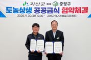 (포탈뉴스통신) 충북 괴산군은 30일 괴산군먹거리통합지원센터에서 서울특별시 중랑구와 도농상생 공공급식 협약을 체결했다고 밝혔다. 이날 협약식에는 괴산군 농식품유통과 태상호 과장과 중랑구 교육지원과 우태희 과장이 참석해 농촌과 도시가 함께 성장할 수 있는 먹거리 선순환 체계 구축 방안을 논의했다. 협약에 따라 두 기관은 ▲괴산군에서 생산한 친환경‧우수 농산물의 안정적 공급 ▲중랑구 내 학교·공공기관·복지시설 급식에 지역 농산물 활용 확대 ▲농업인 소득 안정과 도농교류 활성화 ▲먹거리 교육 및 홍보 활동 공동 추진 등에 협력하기로 했다. 송인헌 군수는 “이번 협약은 괴산군의 안전한 농산물이 서울시민의 식탁에 오르는 뜻깊은 계기”라며, “지역 농가 소득 향상은 물론 도시와 농촌이 함께 발전하는 지속가능한 먹거리 모델을 만들어가겠다”고 강조했다. 괴산군은 이번 협약을 시작으로 공공급식 공급 체계를 점차 확대해 나가며, 도농 상생 협력 사업을 지속적으로 추진해 나갈 계획이다. [뉴스출처 : 충청북도 괴산군]