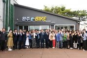(포탈뉴스통신) 완주군이 삼례 ‘쉬어가삼[례:]’ 유휴공간을 친환경 관광 거점으로 새롭게 탈바꿈 시키고, 체류형 관광객 유치를 위한 힘찬 시동을 걸었다. 30일 완주군은 삼례 ‘쉬어가삼[례:]’에서 ‘e-BIKE 자전거 대여소’ 개소식을 열었다. 이 자리에는 유희태 완주군수와 군의원, 지역주민 등 100여 명이 참석했다. 이날 첫선을 보인 자전거 대여소는 유휴공간을 활용해 지역 관광의 핵심 거점으로 재탄생시켜 주목을 받았다. 문화체육관광부의 ‘지역 자전거 여행 활성화’ 국가 공모사업에 선정돼 국비를 지원받아 추진됐으며, 올해부터 내년까지 2개년에 걸쳐 진행될 예정이다. 자전거 대여소는 삼례역에 내린 관광객 및 완주군민들에게 근대문화유산인 삼례문화예술촌을 지나 만경강 자전거길로 나아가는 ‘친환경 생태관광의 관문’ 역할을 수행하게 된다. 유희태 완주군수는 “버려진 공간을 재생해 완주 관광의 새로운 원동력을 만들고, 군민 여러분과 함께 그 출발을 축하하게 되어 매우 기쁘다”며 “오늘 문을 연 자전거 대여소를 시작으로 완주를 찾는 모든 분들이 만족하는 체류형 관광도시를 만드는 데