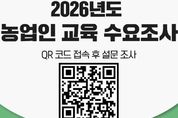 (포탈뉴스통신) 익산시가 농업인의 실제 필요를 교육 정책에 반영하기 위해 '2026년도 농업인 교육 수요 조사'를 시작했다. 익산시는 농업인대학, 새해농업인실용교육, 품목교육, 정보화교육 등 4개 분야를 대상으로 교육 수요 조사를 오는 28일까지 진행한다고 19일 밝혔다. 이번 조사는 빠르게 변화하는 농업환경에 대응하기 위해 현장에서 필요한 교육 내용을 보다 정확히 파악하기 위해 마련됐다. 특히 품목별 기술 수요를 세밀하게 조사해 지역에서 많이 재배되는 작목과 최근 관심이 높아진 품목까지 폭넓게 반영할 방침이다. 조사는 익산시농업기술센터 누리집에서 게시된 빠른 응답, 이른바 큐알(QR) 코드를 통해 참여할 수 있다. 온라인으로 간편하게 의견 제출이 가능해 농업인의 참여 문턱을 낮췄다. 시는 조사 결과를 토대로 농업인대학은 실수요자 중심의 과정으로 재편하고, 품목교육은 신품목 발굴과 기존 작목 심화 등 2026년도 교육 방향을 구체화할 계획이다. 익산시 관계자는 "농업의 변화 속도가 매우 빨라지고 있어 현장에서 실제로 필요로 하는 교육을 정확히 찾는 것이 중요하