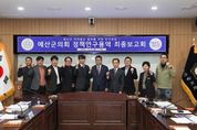 (포탈뉴스통신) 예산군의회는 8일 의회 문화강좌실에서 '예산군 자치법규 정비를 위한 연구모임' 정책연구용역 최종보고회를 개최했다. 이날 보고회에는 연구모임 대표의원인 김영진 의원을 비롯하여 임종용·이길원·김태금 의원과 군청 관계자·외부 전문가 및 연구수행기관 등이 참석했다. 이번 보고회에는 그동안 추진된 연구 결과를 종합 보고받고 조례 정비 방안과 중복·미비 조례 개선 과제 등에 대한 발표가 진행됐다. 참석 의원과 군청 관계자·외부 전문가들은 발표된 연구 결과를 바탕으로 ▲조례의 실효성 제고 방안 ▲상위 법령과의 정합성 확보 ▲행정 실무 적용 가능성 등에 대해 다양한 의견을 제시했다. 또한 불필요하거나 중복된 조례를 정비하고, 군민 생활과 밀접한 규정의 실질적 개선 방향을 논의하는 등 자치입법의 내실화를 위한 심도 있는 토론이 이어졌다. 김영진 대표의원은 “이번 연구는 단순한 조례 정비를 넘어 군민의 권익을 보호하고 행정의 투명성과 효율성을 높이는 기반을 다지는 과정이었다”며, “연구 결과 도출된 개선 과제가 실제 정책과 제도에 반영될 수 있도록 최선을 다하겠다”고 밝혔다.