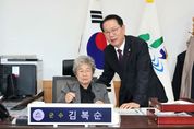 (포탈뉴스통신) 충북 괴산군은 18일 군수실에서 괴산두레학교가 운영 중인 ‘미디어 조각보’ 프로그램을 통해 어르신들과 함께하는 특별한 체험 활동을 진행했다. 이번 프로그램은 '내가 만일 다시 태어난다면?'이라는 주제로, 어르신들이 평소 마음속에 품어온 꿈을 실제로 경험해보는 체험형 평생학습 활동으로 마련됐다. 두레학교의 김복순 어르신(87세)은 “다시 태어난다면 군수가 되고 싶다”는 소망을 밝혔고, 군은 그 꿈을 응원하기 위해 어르신을 ‘일일 군수’로 특별 초청했다. 김복순씨는 송 군수와 함께 군수실을 둘러보고 간단한 군정 설명을 들으며 실제 공직자의 업무 환경을 체험했다. 김복순씨는 “배움의 기회를 다시 얻고, 이렇게 직접 경험까지 할 수 있어 큰 힘이 된다”며 감동의 소감을 전했다. 또 다른 체험자 양옥자 어르신(82세)은 “사단장이 되고 싶다”는 꿈을 밝혔으며 송 군수와 기념촬영과 티타임을 가지며 “평생 처음 가져보는 경험”이라며 기쁨을 전했다. 송 군수는 “오늘의 작은 체험이 어르신들께 새로운 자신감과 즐거운 기억이 되길 바란다”며 “어르신들이 활기찬 삶을 만들어갈