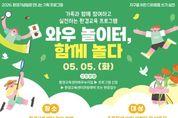 (포탈뉴스통신) 충청북도교육청 환경교육센터와우는 어린이날을 맞아 5월 5일 오전 10시부터 오후 4시 50분까지 센터 일원에서 '와우놀이터, 함께 놀다' 프로그램을 운영한다고 밝혔다. 이번 프로그램은 어린이날을 맞아 어린이들이 놀이와 체험을 통해 생태환경의 가치를 자연스럽게 이해하고 실천할 수 있도록 기획됐다. 프로그램은 태양열을 활용해 간식을 만들어 보는 '햇님식당', 개구리 생태를 배우고 책갈피를 제작하는 '공작놀이터', 자연물을 활용한 놀이를 체험하는 '생태놀이터' 등 특별 프로그램과 ▲곤충 공방 ▲관찰박사 ▲에너지 놀이터 ▲초록 게임방 ▲양말목 공방 ▲플라스틱 새활용 키링 공방 등 상시 프로그램으로 구성됐다. 또한 환경 도서와 체험활동을 연계한 '지구를 읽는 시간, 초록샘 쉼터'를 함께 운영해 어린이들이 독서와 체험을 통해 환경 감수성을 높일 수 있도록 했다. 도내 어린이 및 동반가족이라면 누구나 자유롭게 참여할 수 있으며, 특별 프로그램은 행사 당일까지 환경교육센터와우 누리집 을 통해 신청할 수 있고, 상시 프로그램과 독서 체험 프로그램은 별도 신청 없이 자유롭게 참여할 수 있다. &nb