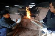 (포탈뉴스통신) 제54회 강진청자축제가 오는 21일 개막을 앞두고 있는 가운데 12일 전남 강진군 대구면 고려청자박물관 제2호 가마에서 도공들이 전통 방식을 그대로 재현하며 소나무 장작을 이용해 불을 지피고 있다. 1300°C의 온도로 정성껏 불을 지펴 구워진 청자는 오는 22일 세상의 빛을 보게 된다. [뉴스출처 : 전라남도 강진군]