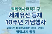 (포탈뉴스통신) 부여군은 오는 10월 2일 정림사지 일원에서 ‘백제역사유적지구 세계유산 등재 10주년 기념행사’를 개최한다고 밝혔다. 2015년 독일 본에서 열린 제39차 세계유산위원회에서 백제역사유적지구가 한국의 12번째 유네스코 세계유산으로 등재되며 찬란했던 백제 문화를 전 세계에 알리는 역사적인 발걸음을 내디뎠다. 군은 그 뜻깊은 순간을 지역 주민을 비롯한 많은 이들과 함께 기념하고, 10년간 걸어온 발자취를 돌아보며 앞으로의 10년, 100년을 향한 새로운 도약의 뜻을 다지고자 이번 행사를 준비했다. 먼저 식전 행사로는 세계유산의 빛나는 가치를 국악으로 표현한 부여군충남국악단의 ‘세계유산의 빛, 백제의 소리’ 공연과 관내 어린이를 대상으로 사전에 개최된 부여군 어린이 세계유산 그리기 대회의 시상식이 진행된다. 공식 행사로는 세계유산 등재 10주년 축하 퍼포먼스와 정림사지 오층 석탑의 아름다움을 한껏 느낄 수 있는 미디어아트 공연이 펼쳐지고, 이후 인기가수인 10CM와 국카스텐의 축하공연이 이어져 가을밤을 뜨겁게 달굴 예정이다. 또한, 세계유산 등재 10주년 축하 메시지를 작성해