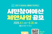 (포탈뉴스통신) 울산광역시교육청은 시민들의 참신한 생각을 내년도 예산에 반영할 ‘시민 참여 예산 제안 사업 생각(아이디어)’를 오는 6월 말까지 공모한다. 시민 참여 예산 제안 사업은 시민이 직접 학교 현장과 울산교육 전반에 필요한 사업을 제안하는 제도이다. 울산교육에 관심 있는 시민과 학생, 학부모, 교직원 등 울산 시민이면 누구나 참여할 수 있다. 공모 분야는 ‘교육예산사업 정책 생각(아이디어)’로 학교 현장과 울산교육 전반에 적용할 수 있는 사업 가운데, 실현 가능성과 파급효과가 큰 사업을 대상으로 한다. 교육재정의 효율성을 높이고 현장 체감도가 높은 사업 발굴에 중점을 둔다. 제안서 제출은 4월 1일부터 6월 30일까지 울산교육청 누리집 ‘교육재정한눈에-시민참여예산’ 에서 온라인으로 접수할 수 있다. 우편 ․ 방문 또는 팩스 신청도 가능하다. 접수된 제안 사업은 담당 부서 검토를 거쳐 시민참여예산위원회에서 타당성 검토와 심의를 진행한다. 이후 시의회 심의를 거쳐 최종 선정된 사업은 내년도 예산에 반영돼 시행된다. 울산교육청은 우수