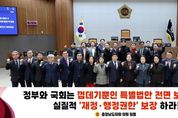 (포탈뉴스통신) 충남도의회는 지난 12일 국회 행정안전위원회에서 가결된 ‘충남대전행정통합특별시 설치를 위한 특별법안(대안)’에 대한 긴급 안건을 심의하기 위해 19일 ‘원포인트 임시회’를 개회했다. 이날 도의회는 제364회 임시회를 열어 충남도지사로부터 제출된 '국회 행정안전위원회에서 의결한 특별법안에 따른 행정구역 통합 추진에 대한 의견 청취의 건'을 처리하고, 김옥수 의원(서산1·국민의힘)이 대표 발의한 '충남대전통합특별시 설치를 위한 특별법안(대안)의 지방재정권 등 통합특별시 권한 강화 촉구 결의안'을 채택했다. 의견 청취의 건은 국회 행안위가 가결한 ‘대안’에 대해 충남도의회의 의견을 듣는 것으로, 도의회는 대안으로의 행정통합은 반대한다는 의견으로 의결했다. 또한 도의회는 결의안을 통해 통합특별시의 권한을 강화하는 내용으로 통합법률안을 수정 보완하여 심의할 것을 촉구했다. 홍성현 의장(천안1·국민의힘)은 “충남과 대전이 통합 논의를 시작했던 건 수도권 일극 체제와 지방소멸 위기 극복의 목표가 있었기 때문이었다”며 “하지만 국회 행정안전위원회는 충청권의 바람과 요구 대신, 국회 통과와 정부 부