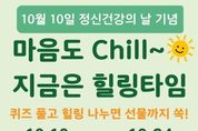 (포탈뉴스통신) 부평구 부평정신건강복지센터는 세계 정신건강의 날(10월 10일)을 맞아 10일부터 24일까지 ‘온라인 힐링 캠페인’을 진행한다. 이번 캠페인은 누구나 정신건강의 중요성을 쉽고 재미있게 되새길 수 있도록 기획됐다. 참여자는 포스터 내 큐알(QR)코드를 통해 ▲세계 정신건강의 날 관련 퀴즈 풀기 ▲스트레스 해소 방법 공유 ▲‘나만의 소울OO(장소·노래·음식 등)’ 작성하기 등 설문에 응답할 수 있다. 센터는 오는 31일 설문에 참여한 선착순 200명에게 편의점 상품권(기프티콘)을 증정할 계획이다. 허휴정 센터장은 “이번 캠페인은 구민들이 일상 속에서 정신건강의 의미를 되새기고, 스스로를 돌보는 방법을 공유하는 기회가 될 것”이라며 “앞으로도 구민들의 정신건강 증진을 위해 다양한 사업을 이어가겠다”고 말했다. [뉴스출처 : 인천시부평구]