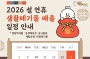 (포탈뉴스통신) 김해시는 다가오는 설 연휴 기간 시민과 귀성객이 쾌적한 환경에서 명절을 보낼 수 있도록 생활폐기물 처리 대책을 시행한다고 26일 밝혔다. 시는 연휴기간 청소상황실을 운영하며 10명(1일 2명)은 취약지역 쓰레기 적치로 시민불편이 발생하지 않도록 현장 점검 및 무단투기・불법 소각 단속을, 10명(1일 2명)은 상황실에서 민원 접수 및 처리를 총괄한다. 설 연휴 전에는 동김해IC 등 주요 진출입로 및 도심지역 등을 중심으로 읍면동별 대청소를 시행하여 고향을 찾는 귀성객과 시민들에게 산뜻한 도시이미지를 제공할 계획이다. 특히, 떼까마귀 출몰로 민원이 잦은 부원동 일원에는 고압물청소를 실시하여 시민들이 쾌적한 환경에서 명절을 보내도록 할 예정이다. 이번 설 연휴 5일동안 수거 대행업체의 휴무일은 2월 14일, 15일, 17일, 18일로, 2월 16일에만 정상 수거를 실시한다. 시민들에게는 가급적 연휴 기간 전에 쓰레기를 미리 배출하고, 연휴 기간에는 배출을 자제해 줄 것을 당부했다. 연휴가 끝난 2월 19일부터 청소 인력과 장비를 총동원해 밀린 쓰레기를 일제 수거·