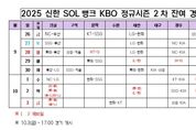 (포탈뉴스통신) KBO는 26일(금) 2025 신한 SOL뱅크 KBO 정규시즌 2차 잔여 경기 일정을 확정했다. 편성된 경기는 1차 잔여 경기 일정에서 우천 취소된 후 편성되지 않았던 7경기이며, 10월 3일(금)까지 편성됐다. 경기가 우천 등으로 취소될 경우 발표된 일정의 예비일로 우선 편성되며, 다음 날 동일 대진일 경우 더블헤더로 편성된다. 예비일이 없을 경우 추후 편성된다. 경기 개시시간은 평일 18시 30분, 토요일 17시, 일요일 14시이다. 또한 10월 3일(금) 경기는 해당 구단의 전날 경기 후 이동을 고려하여 17시에 편성한다. 한편, 우천 등으로 연기되는 경기가 포스트시즌 참가팀 이외의 팀간 경기이거나 포스트시즌 진출팀이라도 해당 시리즈와 관계없는 대진일 경우에는 정규시즌 최종일과 와일드카드 결정전 개막일 사이의 이동일 또는 포스트시즌 기간 중에도 경기를 거행할 수 있으며 와일드카드 결정전 진출 구단의 정규시즌 마지막 경기와 와일드카드 결정전 개최일 사이 최소 하루의 이동일을 둘 예정이다. 또한, 정규시즌 제1,5위 구단이 두 팀일 경우에는 KBO 리그 규정에 의거 와일드카드 결정