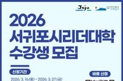 (포탈뉴스통신) 서귀포시에서는 시민 자치의식과 리더십 강화를 위한 ‘제4기 서귀포시 리더대학’의 수강생을 3월 16일부터 3월 27일까지 모집한다. 모집대상은 서귀포시민 및 지역생활권자 100명으로, 전공별 (주민자치학과, 양성평등학과)로 각 50명씩 모집한다. 이번 제4기 리더대학 교육과정은 4월 6일 입학식을 시작으로 8월까지 매주 월요일 오후 18시 30분부터 20시 30분까지 총 20개 강의로 운영되며, 전년도 운영 결과를 바탕으로 학사과정의 효율적인 운영을 통해 수강생의 만족도를 높여나갈 계획이다. ‘주민자치학과’는 수강생들의 자치역량을 실질적으로 강화하기 위해 참여·현장형 수업 비중을 대폭 확대하고, 이를 통해 지역사회 내의 자발적·능동적 리더를 양성하는 데 집중한다. 한편,‘양성평등학과’는 양성평등 가치 확산은 물론 지역 리더십·건강관리·인문교양 등 교육과정을 다채롭게 편성하여 시민들이 폭넓은 분야의 강좌를 접할 수 있도록 운영할 예정이다. 수료기준은 전공 및 공통과목 출석률 60% 이상이며, 이를 충족한 수료생에게는 제주도민대학과 연계한 명예학사 학점 40점이 인정된다.