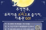 (포탈뉴스통신) 온가족이 모이는 추석 명절, 익산에 세대 간 공감을 나누는 특별한 프로그램이 마련됐다. 익산시는 추석을 맞아 오는 10월 3일부터 12일까지 시민역사기록관에서 '추석연휴, 우리가족 쓰리고로 즐기자, 기록관 고(Go)'를 운영한다고 29일 밝혔다. 이번 프로그램은 고향을 방문하는 관람객이 옛 시절 정취를 떠올릴 수 있도록 기획됐다. 할아버지·할머니부터 손주까지 세대 간의 소통과 추억을 공유하는 장이 될 전망이다. 우선 '1GO(소원쓰고)'는 가족이 함께 편지를 완성하는 시간이다. 다가오는 2026년 붉은 말의 해를 맞아 가족의 소원을 담은 엽서를 작성해 '기록우체통'에 넣으면 새해 선물로 받을 수 있다. '2GO(함께놀고)'는 할아버지·할머니가 어린 시절 즐겼던 다양한 전통놀이를 손주와 함께 체험할 수 있는 프로그램이다. 이어 '3GO(기록하고)'는 사진촬영 이벤트다. 가장 인상 깊었던 기록물이나 기록관 건물 앞에서 가족사진을 찍어 기록으로 남기면, 연말 크리스마스에 인화본을 선물로 받을 수 있다. 한편 익산시민역사기록관