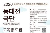 (포탈뉴스통신) 동대전도서관은 지역 내 신중년 세대를 위한 생애주기별 맞춤형 문화예술 교육 프로그램 ‘동대전 극단, 오지게 재미지게’를 운영한다. 이번 프로그램은 5월 6일부터 11월 11일까지 매주 수요일 오전 10시 도서관 소통실1에서 진행되며, 50~69세 신중년을 대상으로 한다. 해당 프로그램은 동대전도서관과 지역 문화예술단체 ‘문화예술교육연구소 씨앗’이 협업해 기획한 것으로, 대전문화재단 주관 ‘2026년 문화예술교육 지원사업’에 선정되어 추진된다. 신중년 세대가 살아온 삶을 인형극으로 풀어내며 인생의 새로운 역할과 사회적 관계를 발견할 수 있도록 구성됐다. 총 22차시로 운영되며, 참가자들이 직접 인형극을 기획하고 완성하는 실습 중심 과정으로 진행된다. 이를 통해 신중년 세대의 문화적 감수성과 소통·협력 능력을 높이고, 지역 공동체 활성화에도 기여할 것으로 기대된다. 참여 인원은 20명 내외로, 신청은 4월 16일부터 대전시 OK예약시스템을 통해 선착순으로 접수하며 교육비는 무료다. 동대전도서관 관계자는 “도서관이 책과 지역 주민의 삶, 그리고 예술
