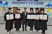 (포탈뉴스통신) 강진군이 지난 11일 보건소 3층 대회의실에서 수강생 30명이 참석한 가운데 ‘2025년 군민자치대학 제3기 건강대학 수료식’을 개최했다. 이날 수료식은 그동안의 활동을 되돌아보는 영상 상영을 시작으로, 보건소장 인사말씀, 수강생 소감 발표, 우수 수강생 시상, 수료증 수여, 기념촬영 순으로 진행됐다. 우수 수강생으로는 3명이 선발됐으며 1년간 의미있는 변화를 이룬 수강생에게 건강체질 개선상, 근육성장상, 건강변화상의 상을 수여했다. 건강대학은 군민의 자가건강관리 능력 향상과 건강생활 실천 문화 확산을 목표로 2023년 처음 개설돼 올해로 3기째를 맞이했다. 2025년 교육은 지난 3월부터 11월까지 총 20회에 걸쳐 ▲파크골프 ▲라인댄스 ▲응급처치교육 ▲영양교육 등 이론과 실습을 병행한 체험형 프로그램으로 운영됐다. 한준호 강진군보건소장은 “지난 2학기 동안 열정적으로 참여해주신 모든 수강생 여러분께 감사드린다”며 “건강대학에서 배운 내용을 생활 속에서 꾸준히 실천해 가족과 이웃의 건강까지 지켜주는 건강리더로 활약해주시길 바란다”고 말했다. 수강생 대표 윤