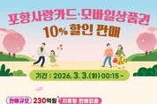 (포탈뉴스통신) 포항시가 지역 경기 회복과 민생경제 안정을 위해 내달 3일부터 카드형·모바일 포항사랑상품권(포항사랑카드) 230억 원을 10% 할인된 금액으로 판매한다. 시는 이달까지 포항사랑상품권 830억 원 발행한 데 이어, 이번 할인 판매분 230억 원 추가 발행으로 올해 연초에만 총 1,060억 원 규모의 포항사랑상품권을 유통하게 된다. 골목상권과 전통시장에 집중 공급해 지역 상권 소비를 촉진하고, 민생경제 회복을 이어간다는 취지다. 이번 할인 판매는 2월과 같은 10% 할인율이 적용되며, 개인 구매 한도는 월 40만 원, 보유 한도는 70만 원이다. 시민들의 가계 부담을 덜고 소상공인 매출 증대에도 실질적인 도움이 될 것으로 기대된다. 포항사랑카드 충전은 3월 3일 0시 15분부터 ‘iM샵 앱’ 또는 지역 내 104개 판매 대행 금융기관 영업점을 통해 가능하다. 카드 판매 대행 금융기관 현황은 포항사랑상품권 홈페이지에서 확인할 수 있으며, 시는 시민 편의를 위해 판매대행점을 지속 확대해 나갈 계획이다. 포항사랑카드는 실물 카드 결제는 물론 ▲삼성페이 ▲네이버페이 QR ▲모바일