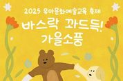 (포탈뉴스통신) (재)대구문화예술진흥원과 대구어린이세상은 10월 25일, 대구어린이세상 숲속쉼터에서 유아문화예술교육 가족 친화형 축제 ‘바스락 꽈드득! 가을소풍’을 개최한다. 이번 행사는 온 가족이 함께 즐길 수 있는 체험 중심의 가족 친화형 문화예술교육 축제로, 숲속 동물 친구들이 가을소풍에 우리를 초대하고, 가을을 처음 맞이한 물고기 가족이 함께 어울려 숲에서 즐거운 시간을 보낸다는 상상력에서 출발해 기획됐다. 축제는 △“가을”을 움직임으로 표현하기 △손 인형극 놀이 : “도토리 친구들을 찾아요!” △공예 체험 활동 : “물고기 가족 만들기” △보물찾기 △상상의 도시락 먹기 등으로 구성됐으며, 유아와 가족이 숲에서 자연을 느끼고 발견하며 가을에 흠뻑 빠질 수 있는 문화예술교육 프로그램이 마련된다. 특히 이번 축제는 2025년도 유아문화예술교육 지원사업 선정단체인 △(사)색동회 대구지부 △교육극단 나무테랑 △창의예술교육연구소 모이다가 직접 강사로 참여할 뿐 아니라 기획과 운영에도 참여하여 문화예술교육의 가치를 확산한다. 특히 대구어린이세상과 공동으로 추진함으로써 대구 유아 문화예술교육의 활성화