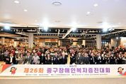 (포탈뉴스통신) 울산지체장애인협회 중구지회가 11월 20일 오전 10시 30분 울산시티컨벤션 안다미로홀에서 제26회 장애인복지증진대회를 개최했다. 이번 행사는 장애에 대한 인식을 개선하고 장애인과 비장애인 사이의 소통을 증진하기 위해 마련됐다. 이날 행사에는 김영길 중구청장과 박경흠 중구의회 의장, 이길우 울산시지체장애인협회장, 정진수 울산시장애인총연합회장, 울산지체장애인 중구지회 관계자, 장애인 및 가족, 자원봉사자 등 350여 명이 함께했다. 이번 행사는 울산중구자원봉사센터 봉사단의 우쿨렐레와 바이올린 연주, 숟가락 난타 공연으로 막을 열었다. 1부 기념식은 △장애인 복지 증진 유공자 표창 및 감사패 수여 △개회사 △격려사 △축사 △기념촬영 순으로 진행됐다. 2부 문화 행사 순서에서는 초대 가수 김송, 배채연의 축하공연과 참가자 장기자랑 등이 펼쳐졌다. 김영길 중구청장은 “장애인 권익 신장과 복지 증진을 위해 힘써주신 모든 분들에게 감사드린다”며 “앞으로도 장애인과 비장애인이 서로 존중하며 더불어 사는 행복한 사회를 만들기 위해 노력하겠다”고 밝혔다. [뉴스출처 :