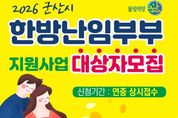 (포탈뉴스통신) 군산시보건소는 난임으로 어려움을 겪고 있는 부부의 경제적 부담을 완화하고 건강한 임신과 출산을 지원하기 위해 ‘한방 난임부부 지원사업’ 참여자를 모집한다. 본 사업은 1인당 180만 원 상당의 한약·침·뜸 등 한방치료를 제공하여 난임 극복을 돕는 사업이다. 지원대상은 신청일 기준 군산시에 주민등록을 둔 난임부부로, 소득과 관계없이 신청할 수 있으며, 모집 인원은 총 27명으로 연중 선착순으로 충원 시까지 접수한다. 신청은 군산시보건소 방문 접수로 진행되며, 구비서류는 ▲주민등록등본 ▲정부지정 난임시술 의료기관의 난임진단서 또는 난임을 확인할 수 있는 산부인과 일반 진단서 및 관련 검사 결과지(자궁 및 난관검사, 난소기능검사, 정액검사) ▲신분증이다. 선정된 대상자는 4개월간 한방 난임 치료와 2개월간 추적조사(총 6개월)에 참여해야 하며, 해당 기간에는 한방 난임 치료 외 다른 난임 시술을 병행할 경우 지원이 제한된다. 기타 자세한 사항은 군산시보건소 가족건강계로 문의하면 된다. [뉴스출처 : 전라북도 군산시]