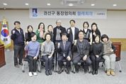 (포탈뉴스통신) 수원시 권선구는 지난 4일, 권선구청 상황실에서 각 동 통장협의회 회장들이 참석한 가운데 2월 정기 월례회의를 개최했다. 이날 회의에서는 2026년 수원시 시민안전보험, 취업준비청년 면접정장 대여사업 '청나래'와 같은 수원시의 주요 사업 안내가 이루어졌으며, 설 명절을 맞아 통장의 역할을 되새기는 시간을 가졌다. 양배근 권선구 통장협의회장은 “설 명절을 맞아 통장으로서 지역의 취약계층 등을 위해 노력하고자 한다”며, “소외된 주민들에게 먼저 손을 내밀어 지역의 발전과 화합을 위해 통장협의회가 앞장서겠다”라고 말했다. 고호 권선구청장은 “명절을 앞두고 통장님들께서 마을 구석구석을 세심하게 살펴주시길 부탁드린다”며, “앞으로도 민관이 긴밀히 소통하고 협력하여 더욱 살기 좋은 권선구를 만들어 나가는 데 최선을 다하겠다”라고 말했다. [뉴스출처 : 경기도 수원시]