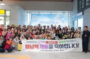 (포탈뉴스통신) 땅끝해남에 철도시대가 열렸다. 전남 서남해안 권역을 연결하는 보성~목포 철도가 27일 개통했다. 27일에는 신설된 해남역에서 철도 개통을 축하하는 기념행사가 개최됐다. 오전 8시 2분 목포역을 출발해 31분만에 해남에 도착한 새마을호의 첫 방문객에게 꽃다발 증정한데 이어 오전 7시 48분 부산을 출발해 낮 12시 25분 해남에 도착한 남도해양관광열차(S-train) 단체여행객을 대상으로 환영식이 진행됐다. 단체 여행객은 해남군의‘열차타고 코리아둘레길 걷기 여행’참가자들로, 9월 27일부터 28일까지 1박2일 해남에서 서해랑길 트레킹 프로그램에 참가한다. 명현관 군수는“부산에서 기차를 타고 오신 관광객들을 해남역에서 맞이하게 되어 감개무량하다”며“앞으로 기차를 통해 영호남, 나아가 전국을 잇는 땅끝 해남의 새로운 관광시대가 열리게 될 것”이라고 전했다. 해남군은 ‘사통팔달 교통망 확충’을 통해 땅끝해남이라는 지리적 불리함을 극복하기 위해 철도·고속도로·지방도 확장 등에 속도를 높이고 있다. 이번 철도 개통으로 남해안 권역 철도망이 완성되면서 그동안