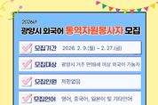 (포탈뉴스통신) 광양시는 각종 축제와 국제행사에서의 통역 지원과 외국인 민원 안내 등 다양한 분야에서 통역 봉사에 참여할 시민 외국어 통역자원봉사자를 2월 9일부터 2월 27일까지 모집한다고 밝혔다. 모집 대상은 공고일 기준 광양시에 거주하는 만 19세 이상 시민으로, 영어·중국어·일본어를 비롯한 기타 외국어 구사가 가능하면 누구나 신청할 수 있다. 선발된 통역자원봉사자는 매화축제 등 광양시 주요 축제와 각종 대형 행사에서 외국인 대상 현장 안내 및 통역을 지원하게 되며, 관내 기관·업체 협조 요청에 따른 통역 지원, 외국인 관광객 및 광양시 거주 외국인을 대상으로 한 안내·민원 협조 등 다양한 활동을 수행하게 된다. 시는 통역자원봉사자에게 자원봉사 실적 입력 및 관리 서비스를 제공하고, 활동 우수자에 대해서는 표창 또는 감사패 수여, 향후 광양시 명예통역관 위촉 시 우선 고려하는 등 인센티브를 제공할 계획이다. 아울러 국내 통·번역 특성화 대학과 연계해 통역자원봉사자의 전문성을 높이기 위한 온라인 통역 교육도 운영할 예정이다. 신청은 시 누리집 공고·공지사항에서 신청서를 내려받아 작성