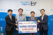 (포탈뉴스통신) 한국가스공사 전북지역본부(본부장 조강철)는 24일, 최근 집중호우로 피해를 입은 군산시 저소득 주민들을 위해 성금 1천만 원을 군산시에 기탁했다. 이번 성금은 지난 6일 집중호우로 주택·상가 침수 등의 피해를 본 이재민들을 돕기 위해 마련됐다. 성금은 전북사회복지공동모금회를 통해 관내 저소득계층 중 수해 피해 이재민에게 전달될 예정이다. 조강철 본부장은 “지역사회와 함께하는 나눔은 기업의 중요한 사회적 책임.”이라며, “이번 성금이 피해 주민들에게 작은 힘이 되길 바라며 앞으로도 지속적인 나눔 활동을 이어가겠다.”라고 전했다. 강임준 군산시장은 “어려운 시기에 이웃을 위해 따뜻한 마음을 나눠주신 한국가스공사 전북지역본부 임직원분들께 감사드린다.”라며, “성금은 꼭 필요한 주민들에게 지원되어 회복에 큰 도움이 될 것.”이라고 말했다. 한국가스공사 전북지역본부는 2004년 설립 이후 천연가스 공급을 비롯해 큰들 봉사단을 운영하며 지역사회 봉사활동과 연탄 기부, 사회복지시설 생필품 및 방역물품 지원, 주거환경 개선(LP가스 시설개선·타이머콕 보급사업) 등 다양한 사회공헌 활동을 펼쳐오고