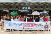 (포탈뉴스통신) 여수세무서 청렴동아리 15명은 25일 오전 비가 내리는 가운데 진남관, 전라좌수영 동문터와 공사중인 동헌 등 전라좌수영성 주요 유적지를 답사하며 이순신의 청렴 리더십 현장체험학습 시간을 가졌다. 여수세무서 청렴리더십 현장학습 프로그램은 사단법인 여수여해재단과 공동으로 분기별로 여수시내 이충무공 유적지를 답사하며 이충무공의 청렴 리더십 강의와 함께 진행하고 있다. 이날 현장답사는 여수여해재단측에서 진남관 안내, 동문 및 전라좌수영 성터 답사에 이어 진남관유물전시관에서는 여수시 문화관광해설사로부터 진남관의 건축물이 지닌 역사에 대해서 상세한 안내를 받았다. 또한 여수세무서 청렴동아리 회원들은 진남관 입구에서 ‘공정하게’, ‘합리적으로’ 등의 구호가 적힌 손팻말을 들고 청렴하고 합리적이 세무행정 실천 캠페인도 펼쳤다. 전반기에는 통제이공대첩비와 충민사 답사를 마쳤으며, 하반기에는 이날 진남관 일대 답사에 이어 11월에 충무공 어머니 사셨던 곳과 선소 등 답사가 이어진다. 여수세무서 김훈 서장은 “세무 공직자로서 이순신 유적지를 답사하는 것은 이순신의 청렴 정신을 배우는 것으로