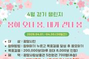 (포탈뉴스통신) 광양시는 오는 4월 1일부터 4월 30일까지 건강걷기 실천 모바일 걷기앱 워크온을 통해 ‘봄이 오나 봄, 내가 걷나 봄! 4월 걷기 챌린지’를 운영한다고 밝혔다. 이번 챌린지는 1걸음당 1마일리지가 적립되며, 하루 최대 8천 마일리지까지 쌓을 수 있다. 기간 동안 누적 20만 보를 달성한 참여자는 광양사랑상품권 5천 원권 응모 자격이 주어지며, 시는 목표 달성자 가운데 추첨을 통해 700명에게 상품권을 지급할 계획이다. 광양시민이면 누구나 참여할 수 있으며, 참여를 희망하는 경우 모바일 걷기 앱 ‘워크온’을 설치한 뒤 ‘광양시 공식 커뮤니티’에 가입하고 챌린지 탭에서 해당 챌린지를 선택해 참여하면 된다. 이후 광양 지역 제한 설정으로 휴대전화 위치 기능을 켠 상태에서 스마트폰을 소지한 채 목표 마일리지가 쌓일 때까지 걸으면 된다. 자세한 사항은 광양시보건소로 문의하면 된다. 광양시 관계자는 “시민들이 걷기를 통해 건강을 관리하고 일상에 활력을 더하는 계기가 되기를 바란다”고 말했다. 한편, 광양시는 생활 속 움직임을 활성화하고 시민 건강 증진을