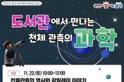 (포탈뉴스통신) 달성군립도서관은 11월 4일부터 ‘도서관에서 만나는 과학(11월 22일·29일)’ 4분기 프로그램 참여자를 모집한다고 밝혔다. 이번 프로그램은 과학에 대한 호기심을 자극하고, 가족 단위로 함께할 수 있는 과학 체험 기회를 제공하기 위해 기획됐다. 4분기 주제는 ‘천체 관측의 과학’으로, 초등학생과 그 가족들이 별과 행성을 관찰하며 우주의 신비를 배우는 체험형 과학 교육으로 구성됐다. 1차 수업은 ‘천체관측의 역사와 갈릴레이 이야기’를 주제로 11월 22일 달성군립도서관 시청각실에서 진행된다. 수업은 망원경의 원리와 별의 색·온도에 대한 이론 교육과 직접 망원경을 만드는 실습 활동으로 이루어져있다. 2차 수업은 11월 29일 국립대구과학관 천문대에서 열린다. 참가자들은 천체망원경을 활용해 별자리와 행성을 관측하고, 전문 해설사와 함께 우주를 탐험할 기회를 갖게 된다. 참가 대상은 관내 초등학교 4~6학년생 30명이며, 11월 4일 오전 9시부터 달성군립도서관 홈페이지를 통해 선착순으로 모집한다. 최재훈 달성군수는 “국립대구과학관과의