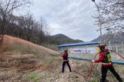 (포탈뉴스통신) 영월군은 영월국유림관리소와 합동으로 산불 취약 공공시설에 대한 산불지연제 사전 살포를 완료하며 산불 대응력을 강화했다고 밝혔다. 이번 산불지연제 살포는 건조한 날씨와 강풍으로 산불 발생 위험이 높아짐에 따라 주요 시설을 보호하고 산불 확산을 사전에 차단하기 위해 추진됐다. 지난 4월 14일에는 국가중요시설 ‘다’급인 한국남부발전 영월빛드림본부를 대상으로 산불지연제를 살포했다. 고성능 산불진화차 2대와 다목적 산불진화차 2대를 투입해 총 3톤의 지연제를 살포했으며, 서측 방면 약 0.5ha 구간에 총연장 800m 규모의 산불 차단선을 조성했다. 이어 4월 15일에는 영월군 양묘장과 환경자원화시설(소각시설)에 대한 추가 살포를 진행했다. 양묘장에는 0.5톤, 환경자원화시설에는 1톤의 지연제를 각각 살포해 산불 확산 방지 조치를 마쳤다. 영월군은 이번 사전 살포를 통해 주요 시설 보호는 물론 초기 대응 시간을 확보하는 등 보다 효과적인 산불 대응 체계를 구축했다. 백윤권 산림정원과장은 “산림청과의 긴밀한 협력을 통해 산불 취약지역과 주요 시설을 중