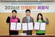 (포탈뉴스통신) 충청북도교육청과 전국학교비정규직연대회의'전국공공운수노조 전국교육공무직본부, 전국학교비정규직노동조합'는 6일, 충북교육청 회의실에서 2026년 단체협약을 체결했다. 이날 체결식에는 윤건영 교육감과 전국학교비정규직노동조합 민태호 위원장, 전국공공운수노조 전국교육공무직본부 정인용 본부장을 비롯한 노사 관계자 등이 참석했다. 이번 협약은 2022년 2월 체결 이후 4년 만에 이루어진 것으로, 노사는 2024년 5월 단체교섭 상견례를 시작으로 약 2년간 59차례 실무교섭을 거쳐 460개 요구안 중 156개 안건에 대해 최종 합의했다. 이번 협약에는 방학 중 비근로자 생계 안정을 위한 근로일수 확대와 출산・육아 지원 강화, 순직자 예우 확대 등 근로 환경 개선 내용을 담았다. 주요 내용으로는 조리사・조리실무사 유급일수 최대 322일, 특수교육실무사 최대 300일 보장과 환경실무사 방학 중 주 2일 근로 보장 등 방학 중 근로일수를 확대해 교육활동 지원과 근로자 생계 안정 기반을 강화했다. 또한 저출산 대응을 위해 육아시간 적용 연령을 만 5세 이하에서 만 8세 이하로 확대하고,