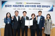 (포탈뉴스통신) 완주군이 외국인 계절근로자들의 원활한 금융 서비스 이용과 안정적인 정착을 돕기 위해 NH농협은행 완주군지부와 긴밀한 협력 체계를 구축했다. 완주군은 지난 3일 군청 전략회의실에서 이종훈 완주군수 권한대행과 원천연 NH농협은행 완주군지부장이 참석한 가운데 ‘외국인 계절근로자 금융지원을 위한 업무협약’을 체결했다. 이번 협약은 완주군에서 운영하는 계절근로자 사업을 활성화하고, 근로자들이 겪는 금융 장벽을 해소하여 사회적·경제적 지위를 높이기 위해 마련됐다. 협약에 따라 양 기관은 외국인 계절근로자의 안정적인 정착을 위해 ▲사업 일정 공유 및 공문 지원 ▲통장 개설 전반 협조 ▲환율 우대 및 수수료 감면 ▲통번역 안내장 제공 ▲농장주 대상 금융 교육 실시 등에 적극 협력하기로 했다. 이종훈 군수 권한대행은 “이번 협약을 통해 외국인 계절근로자들이 겪는 언어와 절차의 어려움을 해소하고, 안정적으로 근로에 전념할 수 있는 환경을 만들겠다”며 “앞으로도 지역 농업 활성화를 위해 다양한 지원책을 강구하겠다”고 밝혔다. [뉴스출처 : 전라북도 완주군]