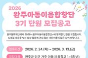 (포탈뉴스통신) (재)완주문화재단은 오는 2월 24일부터'완주아동이음합창단'3기 단원 30명을 공개 모집한다고 밝혔다. '완주아동이음합창단'은 장애·비장애·다문화·학년이 함께 어우러지는 통합형 문화예술교육 프로그램으로, 정기연습과 지역 축제, 합창 경연대회 등 다양한 공연 활동을 통해 아동들이 서로를 이해하고 협력하며 공동체 의식을 키울 수 있는 기회를 제공한다. 모집 대상은 완주군 거주 아동(초등학교 1~6학년)으로, 접수 기간은 2월 24일부터 3월 13일까지이다. 정기 연습은 오는 3월부터 11월까지 매주 월요일 복합문화지구 누에 아트홀에서 진행되며, 11월에는 첫 정기 공연을 통해 활동 성과를 지역사회와 공유할 예정이다. 완주군은 아동·청소년 친화도시 조성에 관한 조례를 기반으로 모든 아동이 차별 없이 문화예술 활동에 참여할 수 있는 환경을 조성하고 있으며,'완주아동이음합창단'은 완주군과 전북특별자치도아동보호전문기관, 완주문화재단이 협력해 운영하고 있다. 2024년 창단 이후 완주 어린이날 행사, 완주아동권리영화제 등 다양한 지역 무대에 참여하며 안정적인 운영 기반을 다져왔고,