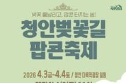 (포탈뉴스통신) 충북 괴산군은 청안면축제추진위원회 주최로 오는 4월 3일부터 4일까지 이틀간 청안다목적광장 일원에서 ‘2026 청안벚꽃길팝콘축제’를 개최한다고 26일 밝혔다. 청안다목적광장을 무대로 펼쳐지는 청안벚꽃길팝콘축제는 주민과 관광객이 지역 고유의 문화와 매력을 체험하도록 기획됐다. 특히, 행사장은 벚꽃 명소로 유명한 문방천 벚나무길과 맞닿아 있어 방문객에게 완연한 봄기운을 선사한다. 축제는 4월 3일 오전 11시 개막식을 시작으로 청안의 지역적 특색을 살린 다채로운 프로그램을 진행할 계획이다. 주요 프로그램은 전통 선비문화를 접목한 △과거시험 재현 △청안스탬프투어 △벚꽃 시화전 △지역 옛 풍경 사진전 ‘청안다움’이다. 이 외에도 가족 단위 방문객을 겨냥한 아동 친화적 체험 부스와 휴게 공간을 운영한다. 청안면축제추진위원회는 대규모 방문객 유입에 대비해 행사장 안전관리, 환경정비, 편의시설 점검에 철저를 기할 방침이라고 밝혔다. 성규철 축제추진위원장은 “청안벚꽃길팝콘축제는 청안의 봄을 알리고 주민과 관광객이 소통하며 즐기는 뜻깊은 행사”라며 “안전하고 내실 있는 축제