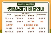 (포탈뉴스통신) 포항시는 추석 명절을 맞아 시민 모두가 쾌적하고 즐거운 연휴를 보낼 수 있도록 오는 29일부터 내달 10일까지 생활쓰레기 관리 종합대책을 집중 추진한다. 특히 올해는 예년보다 긴 연휴가 이어지는 만큼 쓰레기 배출 불편을 최소화하고 쓰레기 없는 도시 환경 조성에 총력을 기울일 방침이다. 시는 지난 25일 청소대행업체, 재활용선별장, SRF(생활폐기물 에너지화시설) 관계자들과 간담회를 열어 휴무일 기동 청소반 운영 등을 협의하고 비상 청소 체계를 구축했다. 먼저 시는 명절을 앞둔 이달 29일부터 10월 5일까지는 불법 투기 및 취약지 중점 수거 활동을 전개하며 29개 읍·면·동에서는 공무원과 자생 단체, 공공근로 인력이 함께하는 명절맞이 대청소를 실시해 주요 도로 및 상습 취약지를 일제 점검·수거할 계획이다. 명절 연휴가 시작되는 내달 3일부터 9일까지 생활쓰레기 종합상황실을 운영해 적체 및 투기 신고에 신속히 대응, 시민 불편을 최소화할 방침이다. 음식물쓰레기는 5일과 추석 당일을 제외하고 연휴 기간 정상 수거해 악취 발생을 최소화한다. 추석 당일(6일)에는