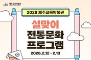 (포탈뉴스통신) 제주도교육청 제주교육박물관은 설 명절을 맞아 12일부터 13일까지 가족 단위 관람객을 대상으로 전통문화를 체험하는 설맞이 프로그램을 운영한다. 이번 프로그램은 새해를 맞아 전통 생활문화를 살펴보고 복과 안녕을 기원하는 옛 풍습을 직접 체험할 수 있도록 기획됐으며 어린이와 보호자가 함께 참여하는 가족 중심의 체험형 프로그램으로 구성됐다. 주요 프로그램으로는 복조리를 직접 엮으며 새해의 복을 기원하는 '복을 담고 마음을 엮는 복조리', 제주 설 명절 ‘정월멩질’의 음식 문화를 살펴보고 절벤·솔벤·기름떡을 만들어 나누는 '설의 온기, 멩질 떡반', 새해의 소망과 다짐을 한 줄의 글로 적어보는 '새해, 새마음', 전시실 곳곳에서‘말(馬)’과 관련된 전시물과 체험물을 찾아보는 전시 연계 미션 프로그램으로 구성되며, 미션을 완료한 참여자에게는 소정의 선물을 증정한다. 제주교육박물관 관계자는“이번 프로그램은 설 명절에 담긴 의미와 제주 고유의 전통문화를 어린이 눈높이에 맞춰 경험할 수 있도록 마련했다”며 “가족이 함께 복과 안녕의 의미를 나누며 새해를 여는 뜻깊은 시간이 되기를 바란다”고 말했다.