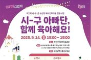 (포탈뉴스통신) 부산시는 오는 9월 14일 오후 3시 부산시민공원 다솜광장에서 온 가족이 함께 즐기고 체험할 수 있는 '시-구 아빠단, 함께 육아해요!' 행사를 개최한다고 밝혔다. ‘함께육아 인식개선 사업’의 하나로 열리는 이번 행사는 부산에 거주하며 영유아 자녀를 둔 가정의 육아를 응원하고 출산·양육 친화적 환경을 조성하고자 마련됐다. 지난해(2024년) 시와 구·군이 함께한 ‘제1회 협동사업’에 이어 열리는 ‘제2회 협동사업’으로, 시 100인의 아빠단과 ‘부산형 육아친화마을 사업’에 참여하는 10개 구의 아빠단이 참여한다. 이날 행사에는 시 100인의 아빠단과 10개 구 육아아빠단 등 총 200여 가정 800여 명이 참여한다. 부산에서 육아하는 가정이 한자리에 모여 서로를 응원하고 공감하며 아이와 함께 즐거운 시간을 보낼 예정이다. 10개 참여 구는 ▲서구 ▲부산진구 ▲동래구 ▲남구 ▲북구 ▲해운대구 ▲강서구 ▲연제구 ▲수영구 ▲사상구다. 행사는 가족·팀 간 협동을 위한 ▲종이박스 기차 만들기 ▲기차역 스탬프 여행 ▲친환경 컵상추 만들기 ▲저글맨 앤드(&) 벌룬 버블 공연 ▲종이