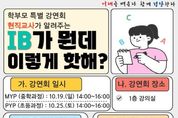 (포탈뉴스통신) 대구달성도서관은 10월 19일과 25일 양일간 학부모와 학생을 대상으로 ‘현직교사가 알려주는 IB가 뭔데 이렇게 핫해?’특별강연을 개최한다. 이번 강연회는 2025년 대구교육의 방향에 맞추어 국제바칼레로레아(IB) 교육에 대한 이해를 돕고, 학교 선택 및 진학에 실질적인 정보를 제공하기 위해 마련된다. 특히, 현직 IB 학교 부장교사가 직접 강연을 맡아 수업 사례와 교육 경험을 생생하게 들려줄 예정이다. 첫 째날인 19일에는 오후 2시부터 4시까지 대명중 이민아 교사가 MYP(중등) 과정을, 25일 오후 2시부터 4시까지는 남동초 현선미 교사가 PYP(초등) 과정을 각각 진행한다. 도서관은 10월 1일 오전 10시부터 누리집을 통해 과정별 학생 및 학부모 40명을 선착순으로 모집한다. 정현호 관장은 “이번 강연회를 통해 학부모와 학생들이 IB 교육의 특성과 가치에 대한 이해를 넓히고, 진로와 학교 선택에 실질적인 도움을 얻을 수 있을 것”이라며 “지역사회에서 IB 교육에 대한 올바른 공감대가 확산되기를 기대한다.”고 밝혔다. [뉴스출처 : 대구시교육청]