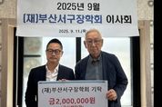 (포탈뉴스통신) 엘 앤더슨병원 김호용 병원장은 지난 11일 (재)부산서구장학회(이사장 홍인길) 이사회에서 지역사회 인재 양성을 위한 뜻깊은 나눔으로 장학금 2백만 원을 기탁했다. [뉴스출처 : 부산시서구]