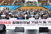 (포탈뉴스통신) 경남 밀양시는 21일 밀양문화체육회관에서 밀양시장애인총연합회(회장 김수현) 주관으로 ‘제46회 장애인의 날’ 기념행사를 개최했다. ‘당연한 일상, 모두가 누릴 수 있도록’이라는 주제로 열린 이번 행사에는 장애인과 가족, 자원봉사자 등 800여 명이 참석해 화합의 시간을 가졌다. 행사는 색소폰 공연, 사물놀이, 수어 노래 공연 등 다채로운 식전 행사로 막을 올렸다. 1부 기념식은 개회 선언을 시작으로 장애인 인권 헌장 낭독, 유공자 표창 수여, 기념사, 격려사 및 축사 순으로 진행됐다. 이어진 2부에서는 탤런트 이상인의 사회로 축하공연과 노래자랑이 펼쳐졌으며, 참가자들은 뜨거운 호응과 함께 열정적으로 무대를 즐기며 화합을 다졌다. 김수현 밀양시장애인총연합회장은 “밀양시 장애인단체가 한마음으로 뜻깊은 기념행사를 개최하게 되어 기쁘다”며 “오늘 이 자리가 슬로건처럼 당연한 일상을 누구나 평등하게 누릴 수 있는 사회를 만들어가는 소중한 계기가 되길 바란다”고 말했다. 밀양시 관계자는 “이번 슬로건처럼 장애인이 일상에서 차별 없이 생활하고, 모두가 함께 어우러지는 사회를 만들기 위해 시 차원