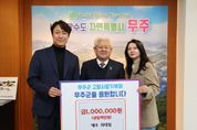 (포탈뉴스통신) 최대철 배우가 지난 25일 무주군에 고향사랑기부금 1백만 원을 기부해 훈훈함을 전했다. 최대철 배우는 현재 KBS 주말드라마 “사랑을 처방해 드립니다”에서 ‘공대한’ 역할로 열연 중으로, 무주군과는 안성면에 자리한 농업회사법인 ㈜포렘(배도라지즙, 홍삼, 천마 제품 등 건강식품 생산업체)의 광고모델로 활약하며 인연을 맺고, 2년째 ‘고향 사랑 무주 사랑’을 실천하고 있다. 최대철 배우는 “무주에 애정이 깊은 만큼 지역발전과 군민 삶의 질 향상을 누구보다 바라고 있다”라며 “따듯한 마음을 담은 기부금이 무주군민을 위해 크게 쓰였으면 하는 바람”이라고 전했다. 기부금 전달식 후에는 무주군 사회관계망 서비스(SNS) 짧은 영상 촬영에 응하며 ‘산불 조심’ 메시지 전달에도 동참해 의미를 더했다. 한편, 고향사랑기부제는 개인이 현재 거주하는 주민등록 주소지를 제외한 지자체에 연간 2천만 원 한도로 기부할 수 있으며, 세액공제 혜택과 함께 기부금의 30% 내에서 지역 특산품 등의 답례품을 받을 수 있다. ‘고향사랑 e음’과 전국 농협을 통해서도 누구나 편리하게 기부할 수 있다. [뉴스출처 :