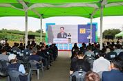 (포탈뉴스통신) 전남 무안군은 24일 전남서남부채소농협에 첨단 AI 자동화 설비기술의 현장 실증을 위해 구축한 ‘농산물 산지유통 실증센터’ 개소식을 성황리에 개최했다. 이날 개소식에는 김산 군수와 이태문 농림축산식품부 정책보좌관을 비롯해 한국로봇융합연구원, 한국생산기술연구원 등 연구기관 관계자와 전국 각지에서 모인 농협 조합장 등 200여 명이 참석해 센터 개소를 축하하며, 향후 운영 방향에 대한 기대감을 나눴다. 개소식은 △개식 선언 △주요 내외빈 소개 △기념사 및 축사 △홍보영상 및 경과보고 △기념 버튼식 △현장 시연 순서로 진행됐다. 2022년 농식품부 공모사업인 ‘고부가가치식품기술개발사업(국비 207억 원)’ 수행을 위해 구축된 실증센터는 국내 스마트 표준모델로 구축된 신규 APC사업과 연계해 지상 2층의 실증센터 1개 동(1,747㎡)과 저장시설 2개 동(1,658㎡) 규모로 현경면 평산리에 조성됐다. 농산물 산지유통 실증센터는 ▲ AI 기반 농산물 자동 선별․파렛타이징(포장) 시스템 적용 ▲ 자동화 물류 구축 R&D 실증화 지원 ▲ 무인지게차․청소로봇 설비 활용 및 각종 소프트웨어 연구․