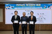 (포탈뉴스통신) 영암군에 534억원 투자, 140명 고용 규모의 2개 수산식품 기업이 들어선다. 24일 전라남도청에서 전라남도와 영암군이, ㈜해진수산, ㈜해진식품과 투자협약을 체결하고 협력을 약속했다. 이날 협약에 따라 ㈜해진수산은 332억원을 투자해 영암군 삼호읍에 마른김 생산시설을 조성하고, 80여 명을 고용할 예정이다. ㈜해진식품도 같은 지역에 202억원을 투자해 조미김 생산시설을 구축하고 60여 명의 일자리를 창출할 계획이다. 영암군은 인·허가 신속 처리, 기반시설 확충 등 행정 지원으로 이번 협약을 뒷받침하고, 지역·기업 상생모델로 지역경제 활성화를 견인한다는 방침이다. 이날 투자협약에는 두 기업의 임한택 대표, 김영록 전라남도지사, 윤재광 영암군부군수 등이 함께 했다. [뉴스출처 : 전라남도 영암군]