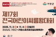 (포탈뉴스통신) 대통령배 2025 전국씨름왕선발대회 10월 29일부터 11월 1일까지, 제17회 전국어린이씨름왕대회 11월 2일부터 11월 4일까지 열려 거창군은 대한씨름협회(회장 이준희)가 주최하고 거창군씨름협회(회장 박진영)가 주관하는 ‘대통령배 2025 전국씨름왕선발대회’와 ‘제17회 전국어린이씨름왕대회’를 오는 29일부터 11월 4일까지 7일간 거창스포츠파크 실내체육관에서 개최한다고 밝혔다. 먼저, ‘대통령배 2025 전국씨름왕선발대회’는 오는 29일부터 11월 1일까지 4일간 열린다. 이번 대회에는 전국 15개 시‧도의 치열한 예선을 통과한 370여 명의 생활체육 씨름선수들이 각 시도를 대표해 참가하여, 전국 생활체육 씨름대회의 최고 권위를 자랑하는 이번 대회를 통해 명예로운 ‘전국 씨름왕’의 자리를 두고 뜨거운 샅바 싸움을 펼칠 예정이다. 대회는 단체전과 개인전에서 총 10개 부문으로 나눠 경기가 진행된다. 남자부는 초등부, 중학부, 고등부, 대학부, 청년부, 중년부, 장년부 등 7개 부문으로 경기가 열리며, 여자부는 매화급(60㎏이하), 국화급(70㎏이하), 무궁화급(80㎏이하) 등 3개 부문으로