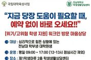 (포탈뉴스통신) 전남대학교가 심리적 위기 상황에 놓인 학생을 ‘그 순간’ 바로 지원하는 즉시 개입형 상담체계를 구축했다. 예약과 대기를 없애고 방문 즉시 전문가와 연결하는 ‘워크인(Walk-in) 심리상담’을 도입해, 위기 대응의 골든타임을 확보하고 고위기·고위험군 학생 보호를 한층 강화한다. 1일 전남대에 따르면, 학생생활상담센터는 심리적 위기를 경험하는 학생들을 신속하게 지원하기 위해 ‘워크인(Walk-in) 심리상담’ 제도를 도입하고 본격 운영에 들어갔다. ‘워크인 심리상담’은 별도의 사전 예약 없이 센터를 방문하면 즉시 상담 전문가와 연결되는 밀착형 지원 시스템이다. 특히 심리적 긴급 상황이나 고위험군에 속한 학생들이 초기 개입 시점을 놓치지 않고 전문적인 상담을 받을 수 있도록 설계됐다. 이번 제도는 학생들이 도움을 요청하는 ‘바로 그 순간’에 개입하는 것을 핵심으로, 기존 예약 중심 상담 체계의 한계를 보완하고 보다 신속하고 실효성 있는 위기 대응을 가능하게 할 것으로 기대된다. 정주리 학생생활상담센터장은 “학생들이 마음의 문을 열고 도움을 요청하는 그 순간에