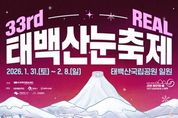 (포탈뉴스통신) (재)태백시문화재단은 제33회 태백산 눈축제의 공식 포스터를 공개하고 본격적인 홍보에 나섰다고 밝혔다. 제33회 태백산 눈축제는 오는 2026년 1월 31일부터 2월 8일까지 태백산국립공원 일원에서 열릴 예정으로, 이번 축제는 ‘2026 RE⧗AL 태백산 눈축제’를 슬로건으로 시민과 관광객이 함께 참여하는 체류형 겨울축제로 운영된다. 공개된 공식 포스터는 ‘33rd REAL 태백산 눈축제’를 메인 타이틀로, 이번 축제의 주제인 ‘REAL’을 직관적으로 배치해 축제의 방향성과 정체성을 명확히 전달한다. ‘REAL’은 △항상 기억에 남는 축제(REMEMBER ALWAYS) △시민과 함께 소통하는 축제(REPLY ALWAYS) △휴식이 공존하는 축제(RELAX ALWAYS)를 의미한다. 포스터는 와인 컬러 톤을 바탕으로 한 겨울 산세와 조명 연출을 통해 눈축제 특유의 따뜻하고 안정적인 분위기를 표현했으며, 천제단과 태백시 마스코트 ‘태붐이’, 겨울 체험 장면 등을 배치해 태백만의 지역성과 가족 친화적 이미지를 함께 담아냈다. 문화재단은 축제의 인지도와 친근감을 높이기 위해 올해 처음으로