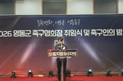 (포탈뉴스통신) “영동 축구의 위상을 바로 세우고, 새로운 시대를 선배님들과 함께 열어가겠습니다.” 제6대 영동군 축구협회장으로 김영민 신임 회장이 17일 공식 취임했다. 이날 취임식에는 정영철 영동군수, 신현광 영동군의회 의장, 박덕흠 국회의원, 김보현 영동교육지원청 교육장 등 주요 내빈과 지역 축구계 인사 등 300여 명이 참석해 뜨거운 축하와 함께 새로운 변화에 대한 기대감을 나타냈다. 행사는 황정하 영동군체육회장의 인준서 수여로 시작됐다. 이어 협회 발전을 위해 헌신한 위정복 전임 회장에게 재직기념패를 전달하는 뜻깊은 시간이 마련됐다. 김 회장은 역대 회장 3명에게 공로패를 수여하며 선배 축구인에 대한 예우를 표했으며, 지역 축구의 기반을 이루고 있는 7개 소속 클럽 회장들에게도 기념패를 전달해 현장 동호인들과의 결속을 다졌다. 특히 김 회장은 취임 첫 공식 행보로 유소년 축구 발전기금 100만 원을 기탁하며 지역 축구의 미래를 위한 의지를 강조해 참석자들로부터 큰 호응을 얻었다. 김 회장은 취임사에서 “젊은 변화가 곧 새로운 영동 축구의 출발점”이라며
